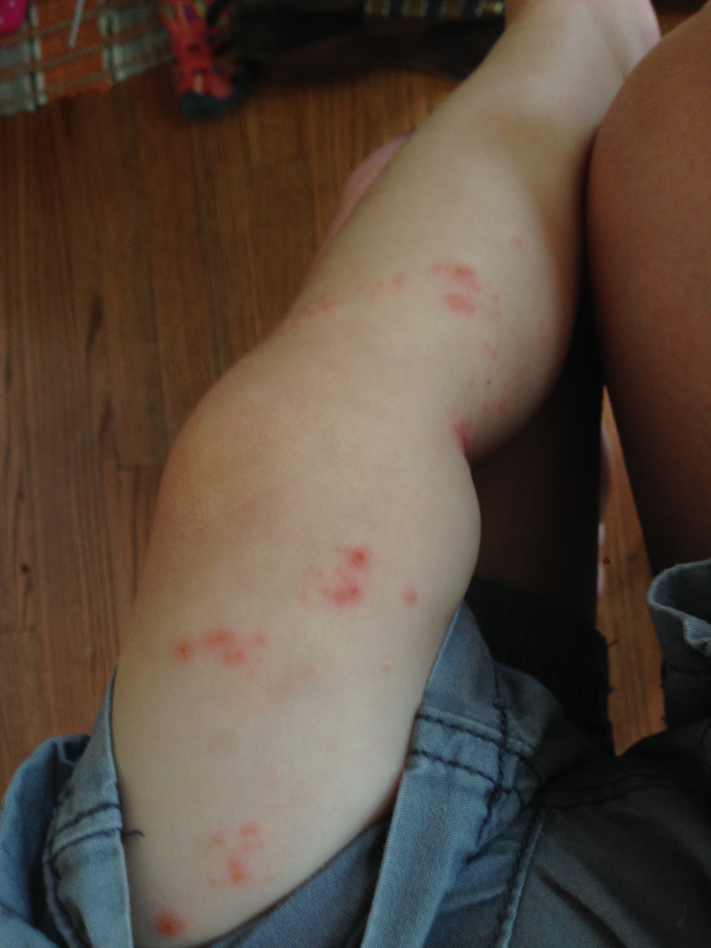 Friday, I noticed D’s knees were looking a little worse but kept applying the antibiotic. By night, his fever started again. When I woke up this morning (Saturday) and took him out of his crib, his rash had taken a turn for the worse. It’s now widespread all over his body and has broken out into sores, blisters, is scabbed over from bleeding in spots, and they itch. He looks awful. M took him back into the doctor again so we’re going to try oral antibiotics. This is the second time D’s had impetigo. The eczema gets so bad, it breaks open, bacteria gets in, and infection can ensue.