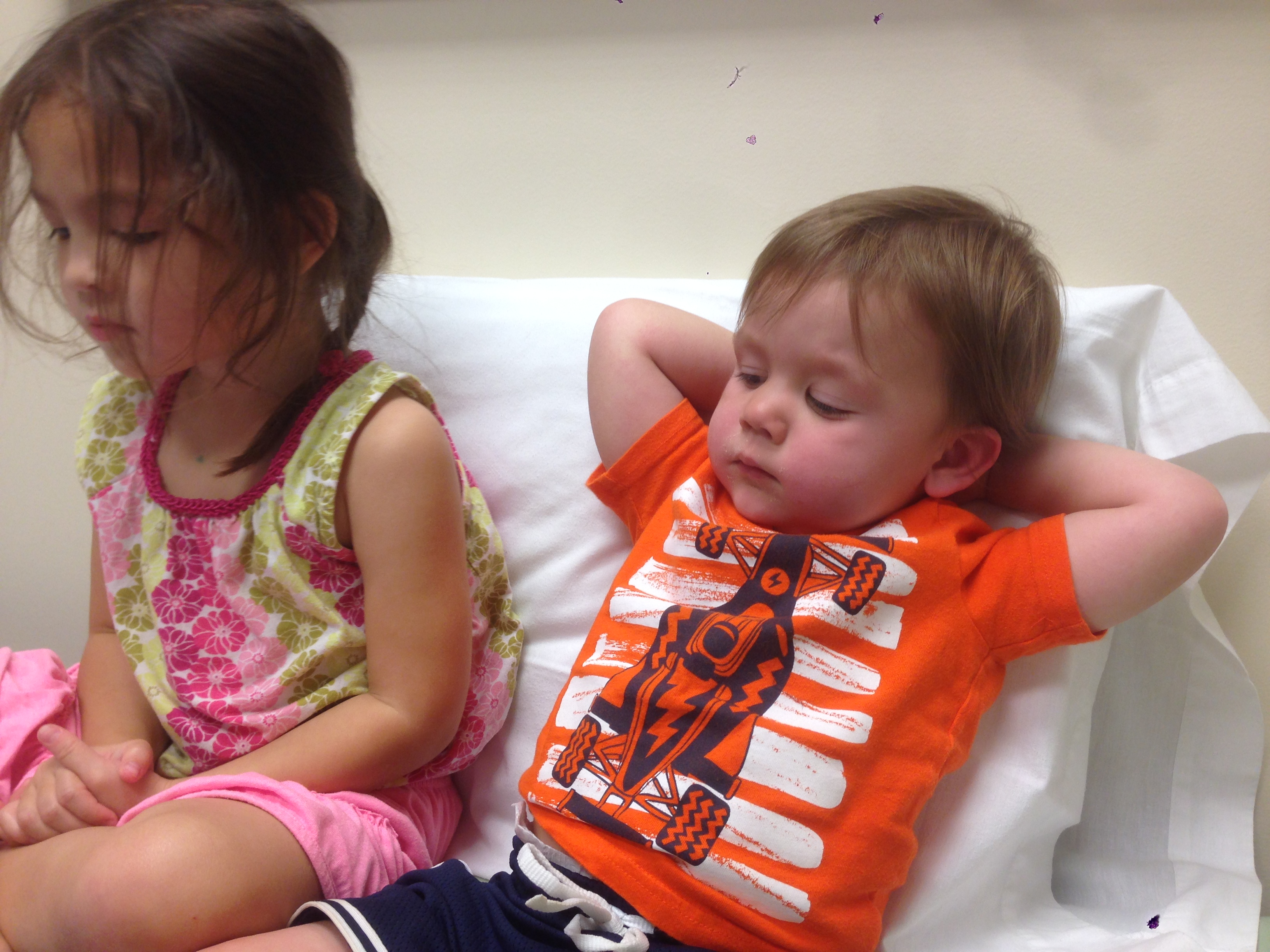 The highlight of the urgent care visit was when Kate shyly said to the doctor, “I love you” out of nowhere when he was in the middle of talking to me. The nurses were in hysterics. Before he could restart, Dean belts out a loud, “I’m two!” and I thought, yes little man, you are, and I’m so incredibly proud of you for being so strong during all of this.